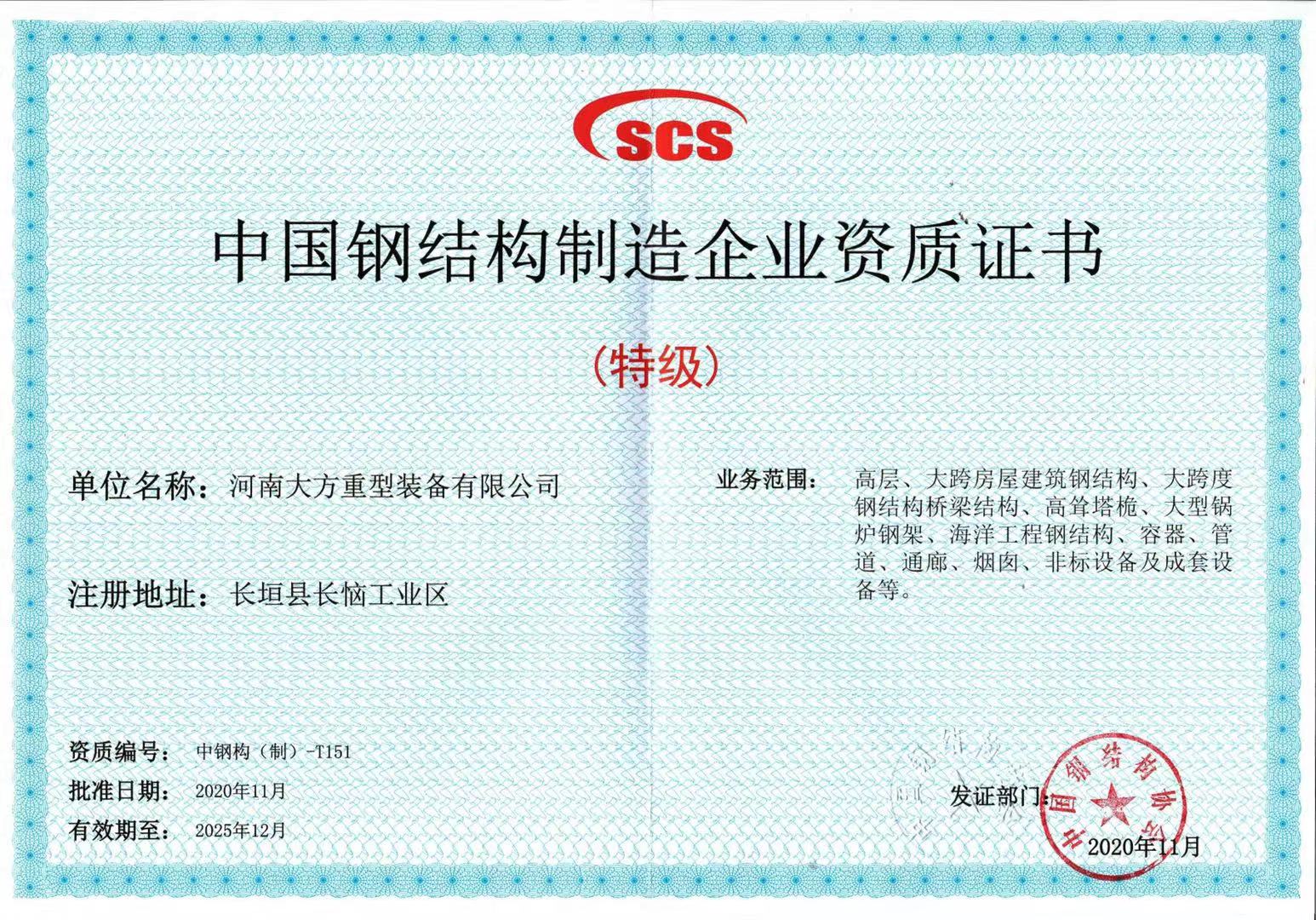 大方重裝鋼結(jié)構(gòu)特級資質(zhì)