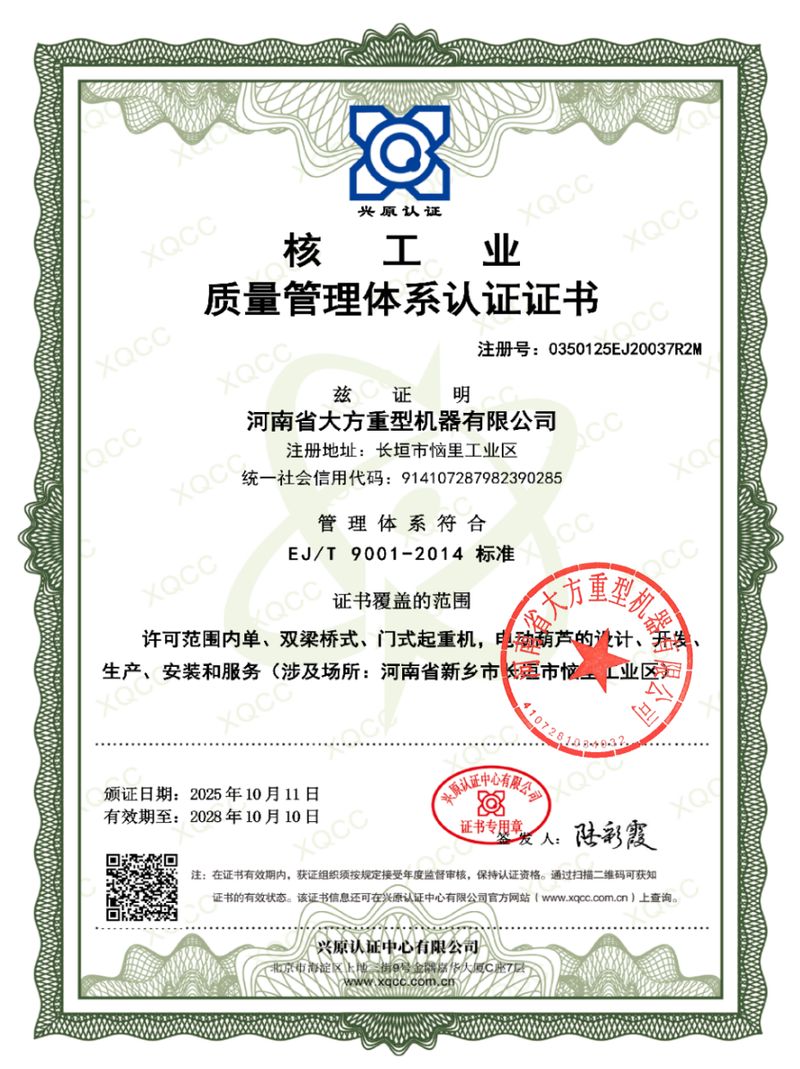 核工業(yè)質(zhì)量管理體系認(rèn)證證書