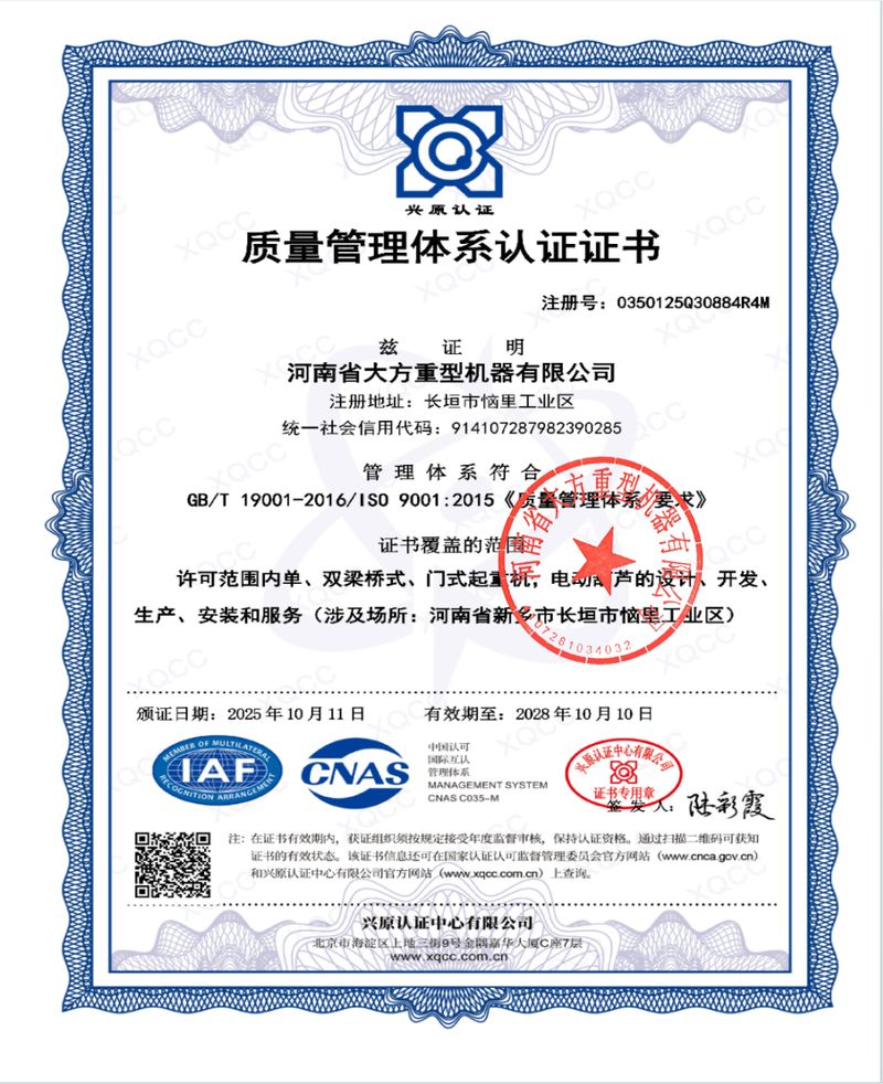 · 地 址 : 河南省新鄉(xiāng)市長惱工業(yè)區(qū) COPYRIGHT ? 2016 河南省大方重型機器有限公司 版權(quán)為:河南省大方重型機器有限公司 ALL RIGHTS RESERVED. · 手 機 : 13837396333 電 話:0373-8793783 傳 真 :0373-8732777 · 郵 箱 : dafangcrane@126.com