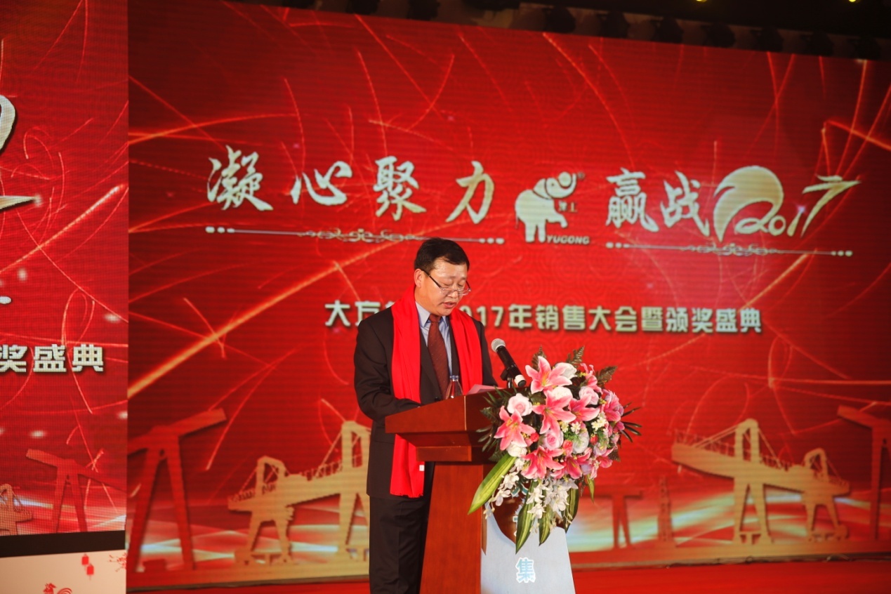 上午10時(shí)8分,大會(huì)正式拉開帷幕。大方重機(jī)副總經(jīng)理劉紫軍做了《聚變共贏、決戰(zhàn)2017》的工作報(bào)告。他**向常年在外的銷售精英及家人們致以新春的問候和祝福,緊接著劉總從2016年的工作成果、服務(wù)、質(zhì)量提升、2017年新產(chǎn)品推廣方向、新年銷售政策等幾個(gè)方面展開了論述: