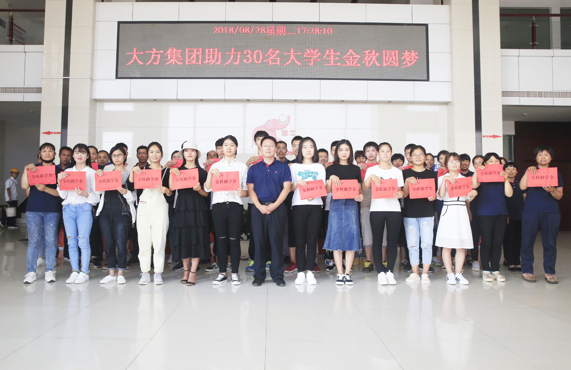金秋時(shí)節(jié)既是菊花飄香之時(shí),又是無(wú)數(shù)孩子帶著對(duì)大學(xué)生活的無(wú)限憧憬的圓夢(mèng)之旅。為了全面踐行“為客戶、為員工、為社會(huì)”的企業(yè)文化,不讓困難員工子女因?yàn)榧彝ソ?jīng)濟(jì)困難原因而遠(yuǎn)離校園,幫助集團(tuán)職工子女成長(zhǎng)成才,讓員工在公司能夠安心工作,8月28日下午,大方集團(tuán)開(kāi)展金秋助學(xué)活動(dòng),讓30名大學(xué)生分別拿到3000元助學(xué)金。截止到目前,集團(tuán)已經(jīng)連續(xù)多年資助寒門(mén)學(xué)子實(shí)現(xiàn)大學(xué)夢(mèng),資助金額達(dá)到了近百萬(wàn)元。