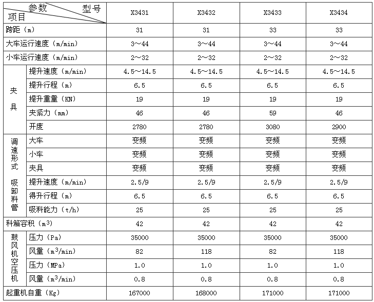 該機(jī)是預(yù)焙燒陽(yáng)極車(chē)間專(zhuān)用起重機(jī),它的主要用途是用夾鉗將鏈?zhǔn)捷斔蜋C(jī)上的生碳?jí)K裝入焙燒爐坑內(nèi);用卸料管將料倉(cāng)中的填充料填人爐坑內(nèi);用吸料管將爐內(nèi)的填充料吸出,再利用夾具將爐內(nèi)熱炭塊運(yùn)到鏈?zhǔn)捷斔蜋C(jī)上。將炭塊運(yùn)到指定地點(diǎn),在小車(chē)上裝有輔助吸料管可清掃煙道、排除粉塵。