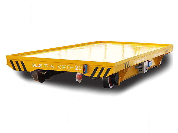 電動(dòng)平車,又稱電動(dòng)平板車、電平車、臺(tái)車、過跨車、電動(dòng)軌道車、地爬車等,是一種廠內(nèi)有軌電動(dòng)運(yùn)輸車輛,**它是一種軌道型運(yùn)輸車輛,需要在地面上鋪設(shè)軌道,軌道一般為工字型面接觸道軌;其次它是電驅(qū)動(dòng)車輛,在電機(jī)減速機(jī)驅(qū)動(dòng)下自動(dòng)運(yùn)行,再次它是一種平板車,臺(tái)面平整無(wú)廂蓋,特殊情況下也可以是非平面但無(wú)廂蓋,車體無(wú)方向盤只有前進(jìn)后退方向(即使轉(zhuǎn)彎也城靠軌道轉(zhuǎn)彎)。此種車輛具有結(jié)構(gòu)簡(jiǎn)單、使用方便、承載能力大、不怕臟不怕砸、維護(hù)容易、使用壽命長(zhǎng)等特點(diǎn),因其方便、壯實(shí)、經(jīng)濟(jì)、實(shí)用、易清理等諸多優(yōu)點(diǎn),成為企業(yè)廠房?jī)?nèi)部及廠房與廠房之間短距離定點(diǎn)頻繁運(yùn)載重物的首選運(yùn)輸工具。